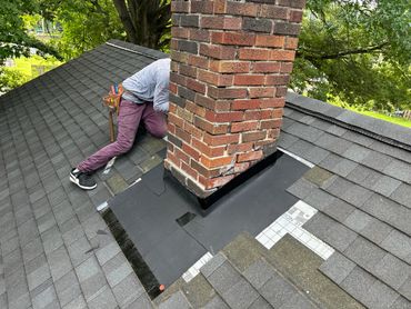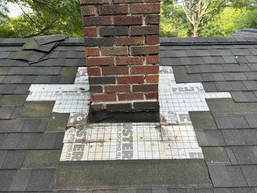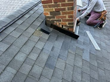 New shingles and step flashing are next! We will seal up any areas where new shingles touch the old.